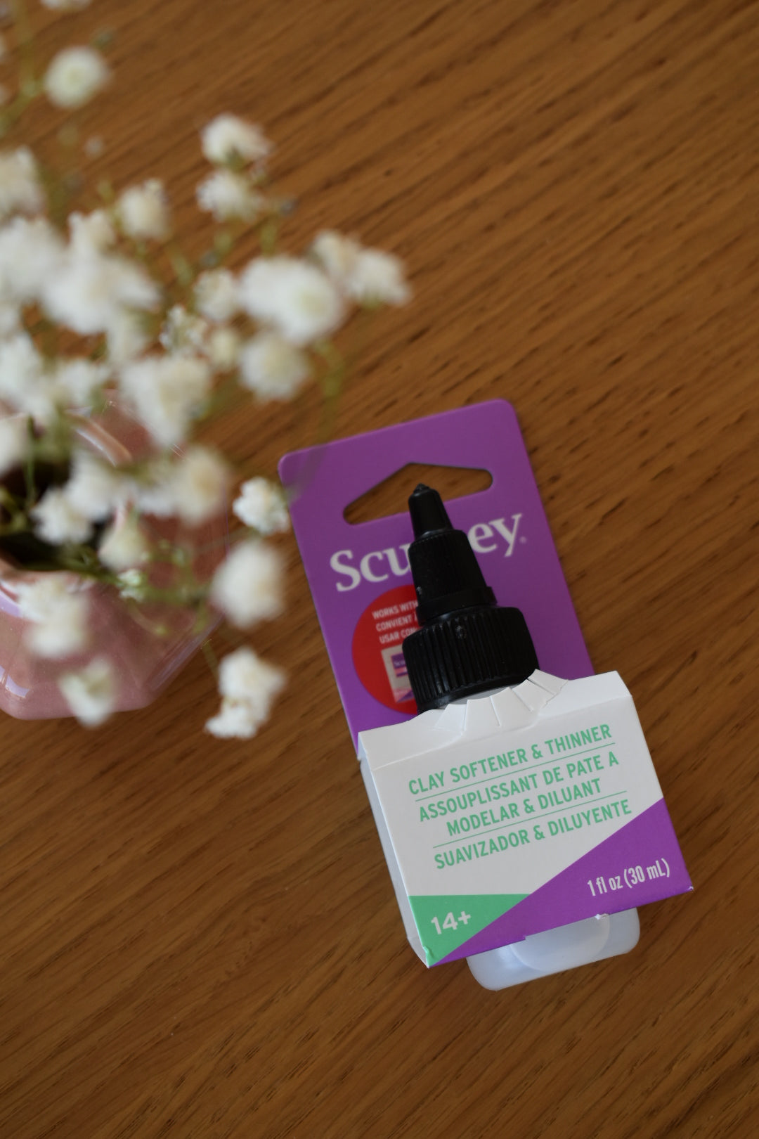 L'assouplissant et diluant Sculpey permet d'assouplir la pâte polymère et de diluer la pâte Sculpey liquide . Quelques gouttes suffisent pour faire toute la différence.