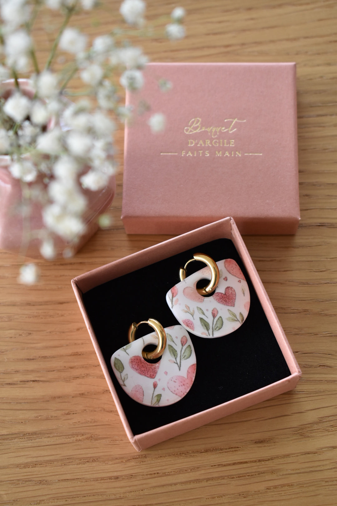 Paire de pampilles amovibles, modèle demi-cercle à motif cœurs façon floral.