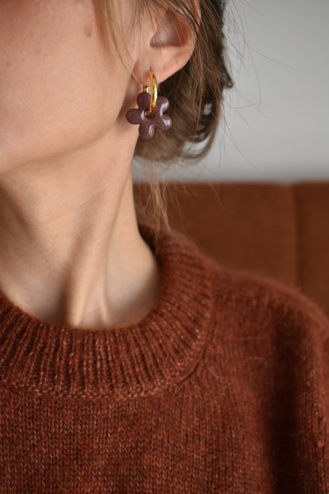 1 paire de pampilles petites fleurs, couleur marron (2,2cm)