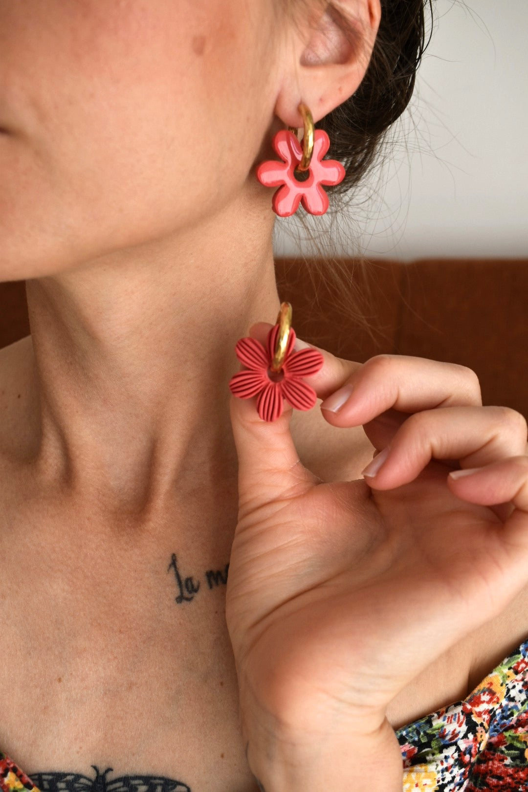Paire de pampilles amovibles et réversibles en forme de fleurs. Texturée et mat d'un côté, lisse et brillante de l'autre 💞