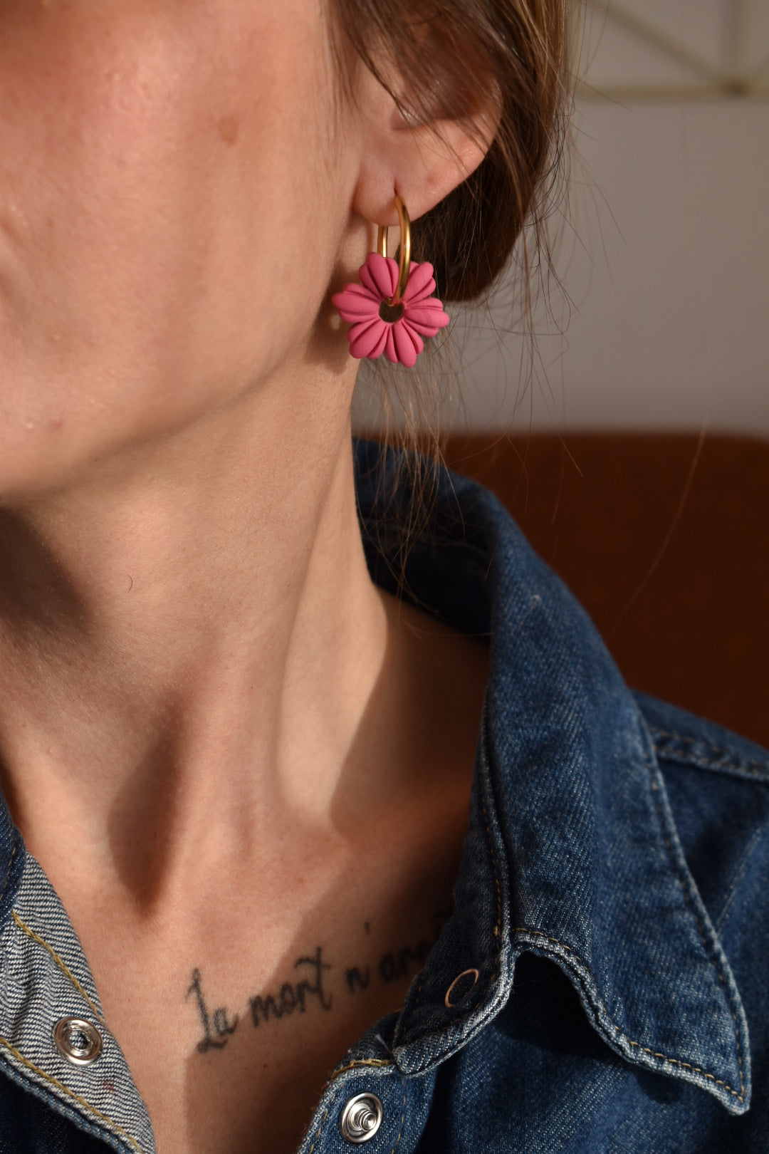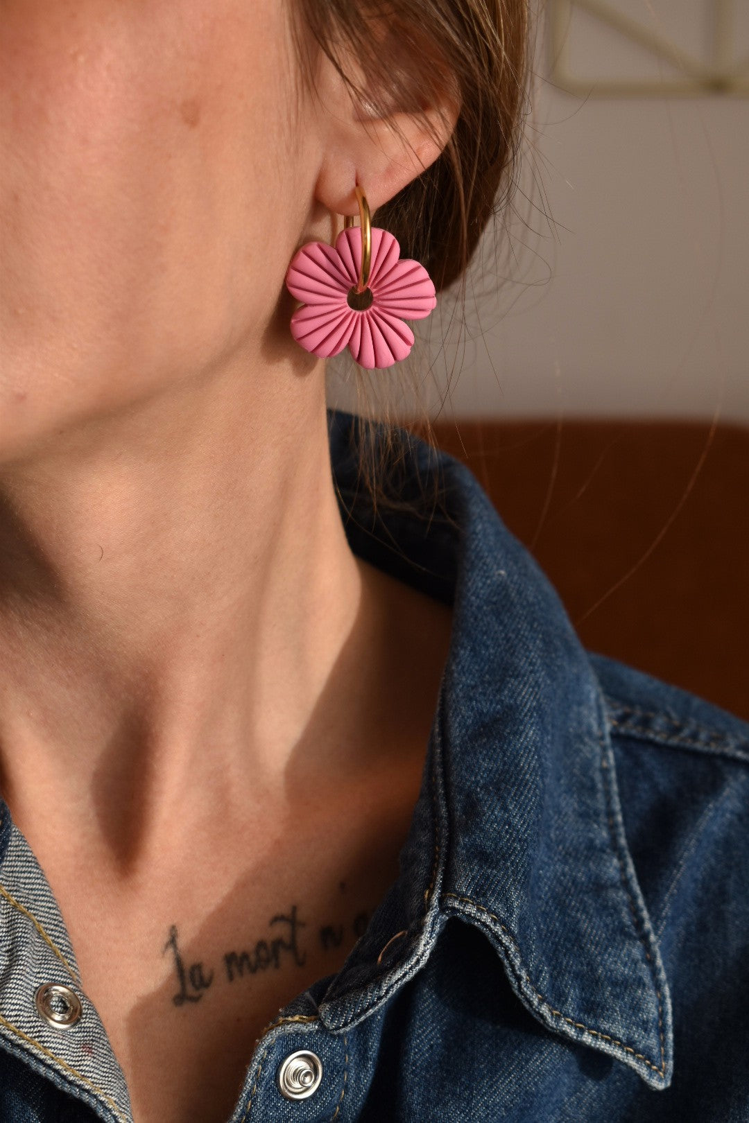 1 paire de pampilles petites fleurs, couleur rose polaire (2cm)