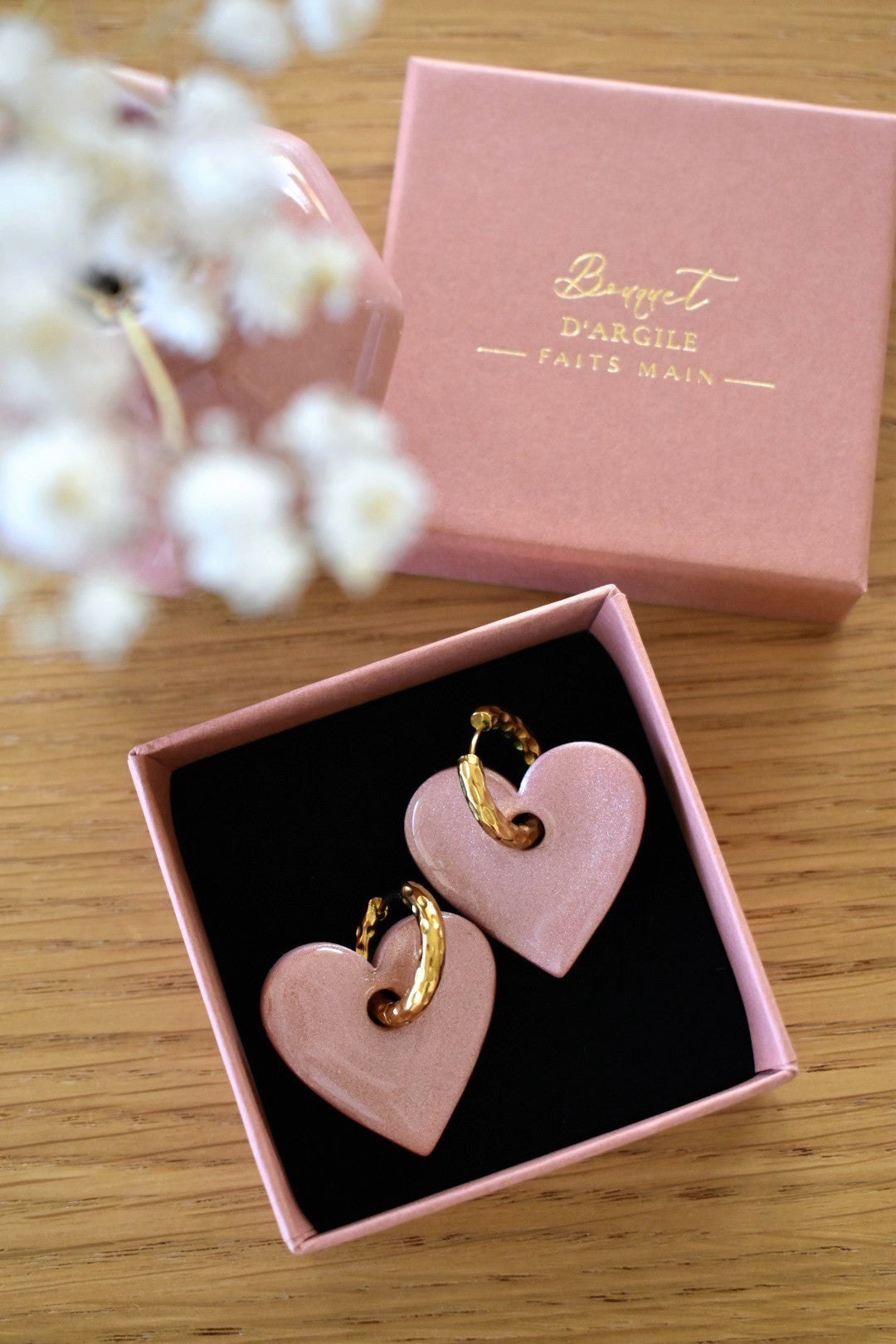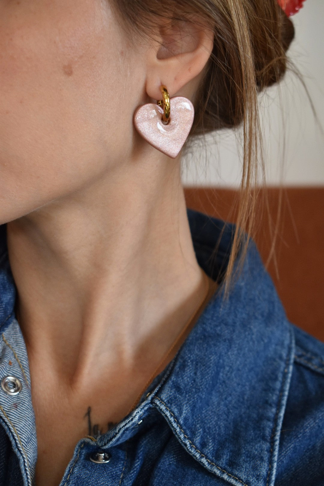 Paire de pampilles amovibles en forme de cœur, or rose nacré.