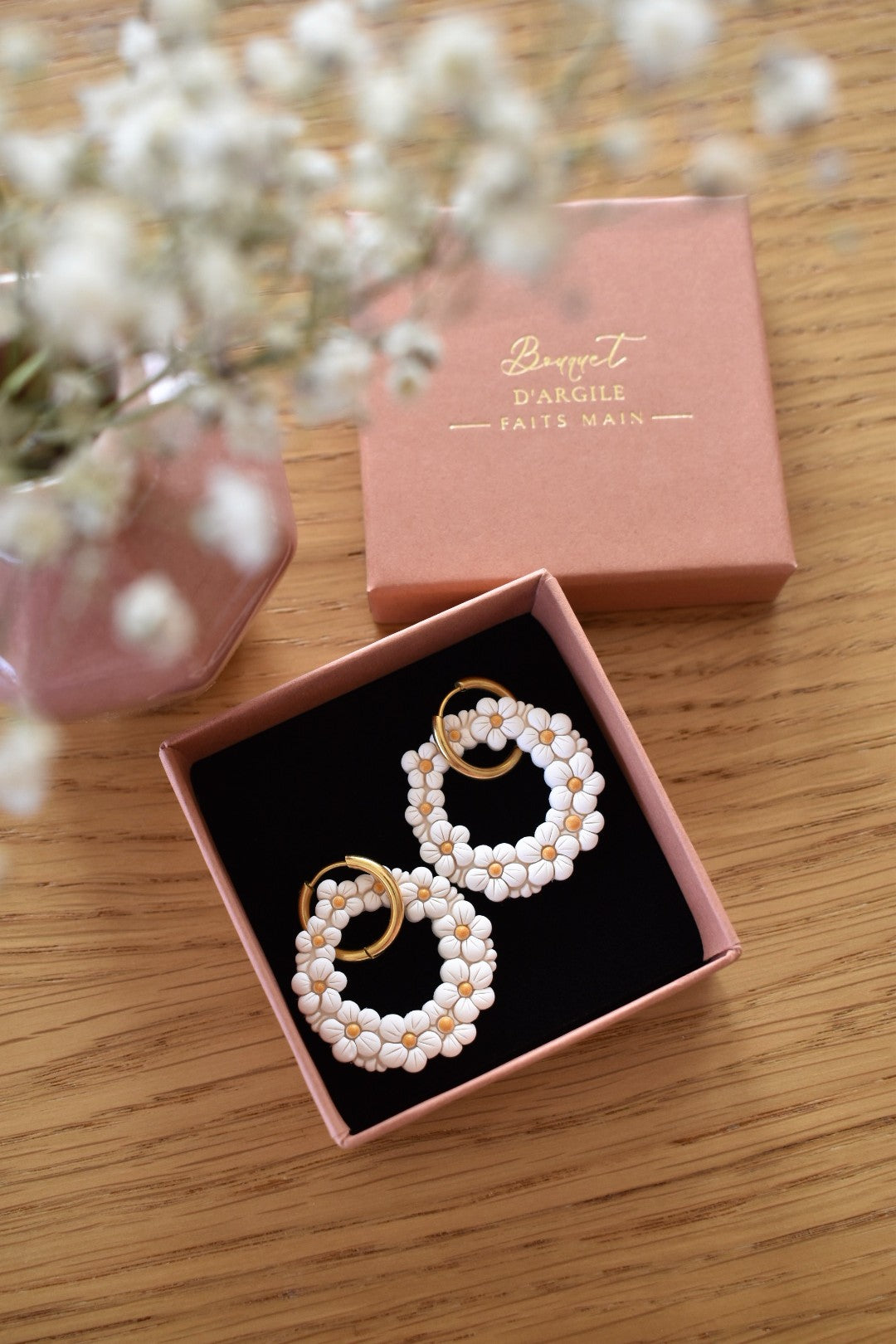 Pampilles en argile polymère, finition mate.