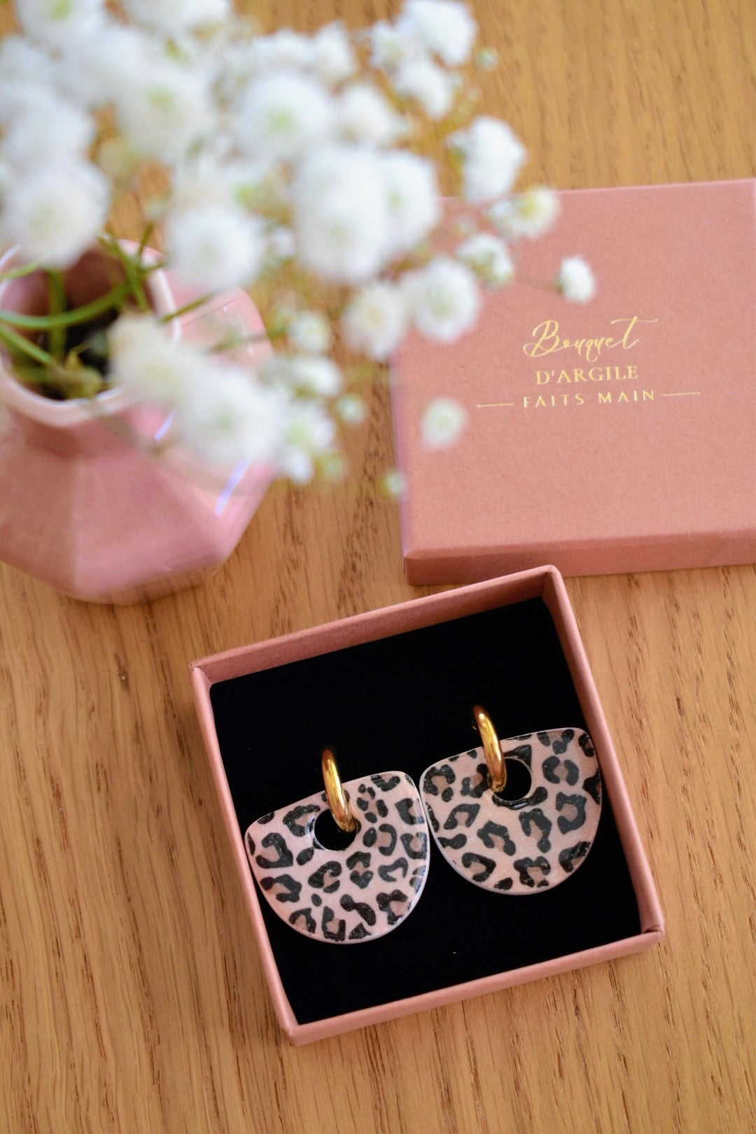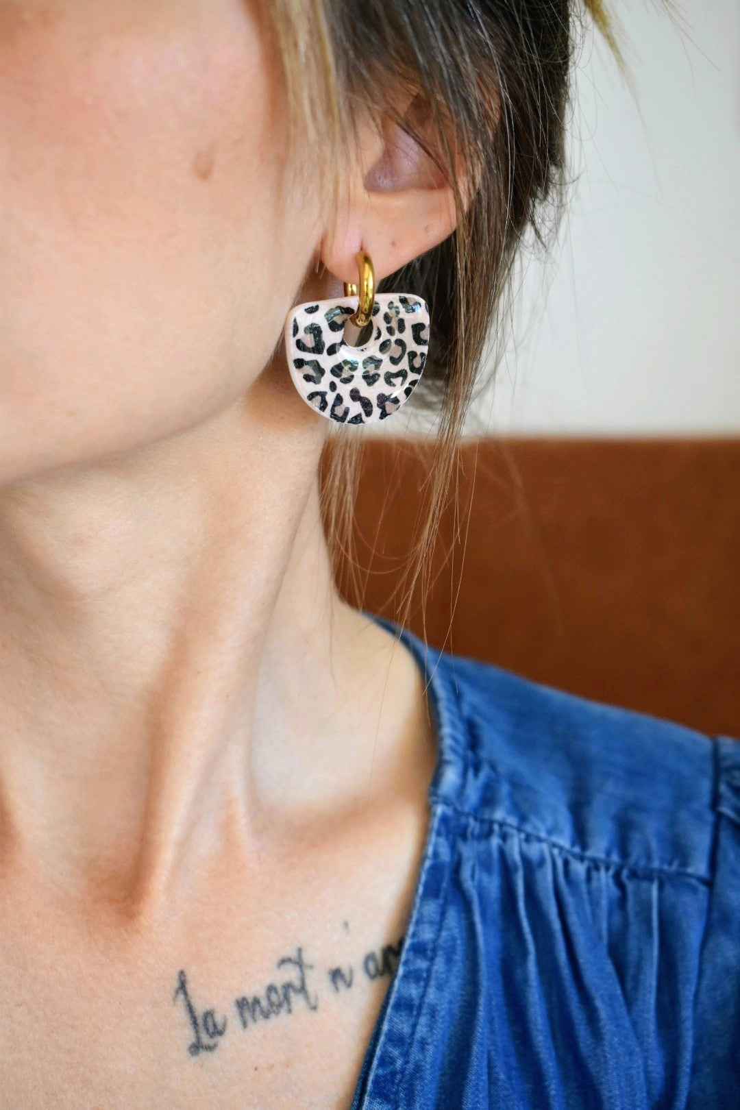 Paire de pampilles amovibles, modèle demi-cercle à motif léopard