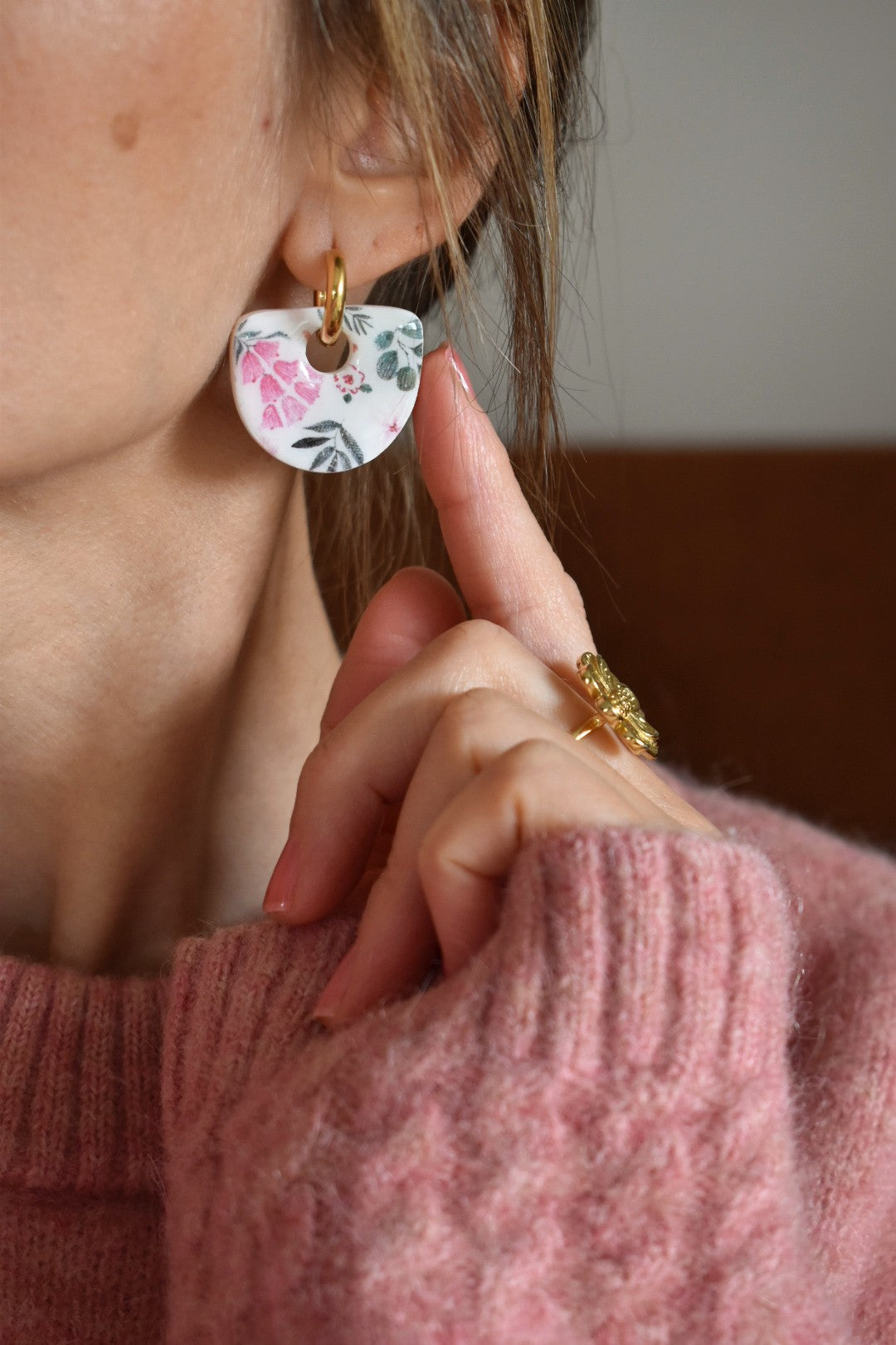 Pampilles demi-cercle, motif fleurs