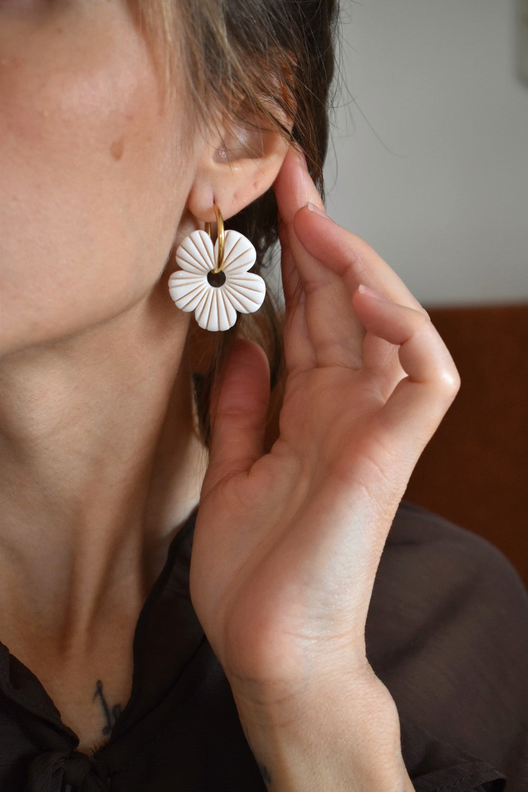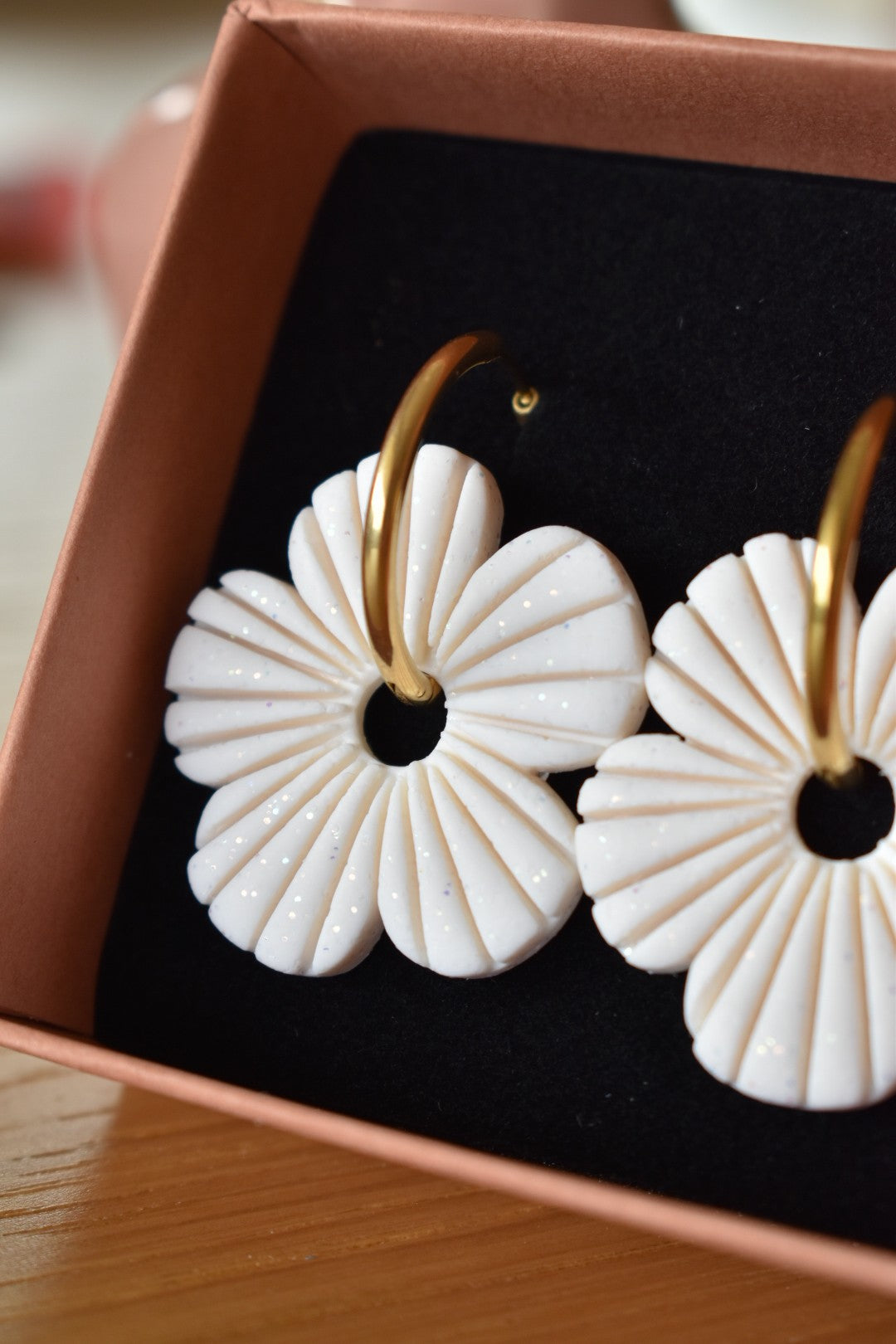 Paire de pampilles amovibles en forme de fleurs texturées.