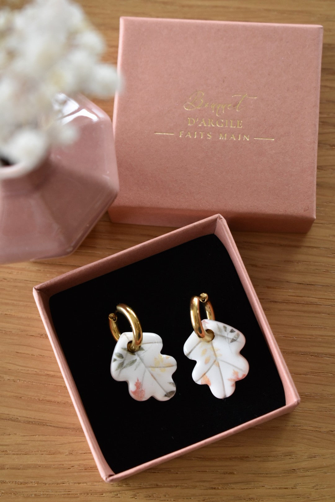 Paire de pampilles amovibles en forme de petites feuilles à motif feuilles d'érable.